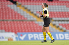 Querétaro, Querétaro, 29 de marzo de 2026. Ximena Márquez Ruiz, árbitra central, durante el partido correspondiente a la jornada 14 del torneo Clausura 2026 de la Liga BBVA MX Femenil, entre el Club Querétaro y las Bravas de FC Juárez, realizado en el estadio La Corregidora. Foto: Imago7/ Hugo Martinez