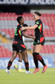 Querétaro, Querétaro, 29 de marzo de 2026. Marta Alemany y Leidy Ramos en festejo, durante el partido correspondiente a la jornada 14 del torneo Clausura 2026 de la Liga BBVA MX Femenil, entre el Club Querétaro y las Bravas de FC Juárez, realizado en el estadio La Corregidora. Foto: Imago7/ Hugo Martinez
