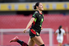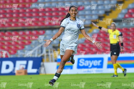Querétaro, Querétaro, 29 de marzo de 2026. Victoria Ceceña en festejo de gol, durante el partido correspondiente a la jornada 14 del torneo Clausura 2026 de la Liga BBVA MX Femenil, entre el Club Querétaro y las Bravas de FC Juárez, realizado en el estadio La Corregidora. Foto: Imago7/ Olimpia Puga