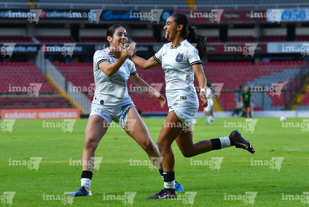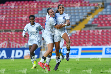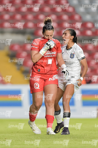 Querétaro, Querétaro, 29 de marzo de 2026. Bianca Mora y Norma Palafox en festejo de gol, durante el partido correspondiente a la jornada 14 del torneo Clausura 2026 de la Liga BBVA MX Femenil, entre el Club Querétaro y las Bravas de FC Juárez, realizado en el estadio La Corregidora. Foto: Imago7/ Hugo Martinez