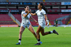 Querétaro, Querétaro, 29 de marzo de 2026. Marianyela Jiménez y Victoria Ceceña en festejo de gol, durante el partido correspondiente a la jornada 14 del torneo Clausura 2026 de la Liga BBVA MX Femenil, entre el Club Querétaro y las Bravas de FC Juárez, realizado en el estadio La Corregidora. Foto: Imago7/ Olimpia Puga
