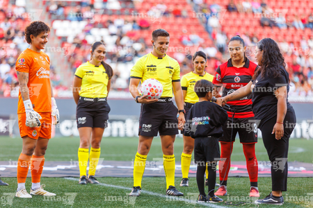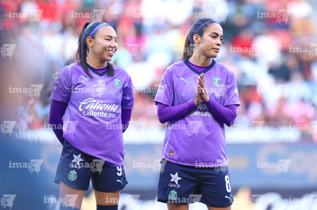 Tijuana, Baja California, 29 de marzo de 2026. Protocolo, durante el partido correspondiente a la jornada 14 del torneo Clausura 2026 de la Liga BBVA MX Femenil, entre las Xolas de Tijuana y las Chivas Rayadas del Guadalajara, realizado en el estadio Caliente. Foto: Imago7/ David Vega