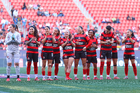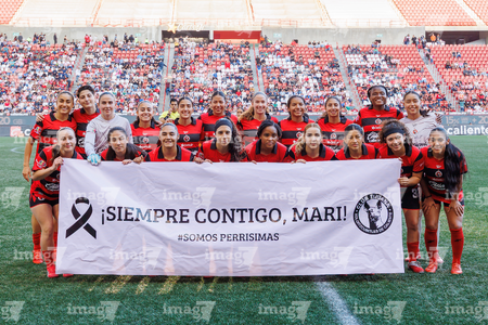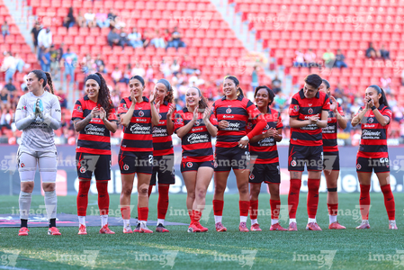 Tijuana, Baja California, 29 de marzo de 2026. Protocolo, durante el partido correspondiente a la jornada 14 del torneo Clausura 2026 de la Liga BBVA MX Femenil, entre las Xolas de Tijuana y las Chivas Rayadas del Guadalajara, realizado en el estadio Caliente. Foto: Imago7/Agustín Reyes