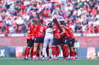 Tijuana, Baja California, 29 de marzo de 2026. Jugadoras de Xolas, durante el partido correspondiente a la jornada 14 del torneo Clausura 2026 de la Liga BBVA MX Femenil, entre las Xolas de Tijuana y las Chivas Rayadas del Guadalajara, realizado en el estadio Caliente. Foto: Imago7/ David Vega