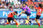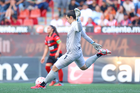 Tijuana, Baja California, 29 de marzo de 2026. Jazmín Enrigue anota gol, durante el partido correspondiente a la jornada 14 del torneo Clausura 2026 de la Liga BBVA MX Femenil, entre las Xolas de Tijuana y las Chivas Rayadas del Guadalajara, realizado en el estadio Caliente. Foto: Imago7/ David Vega