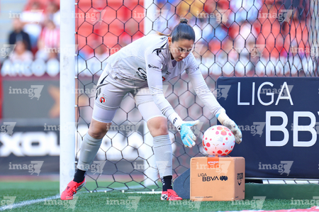 Tijuana, Baja California, 29 de marzo de 2026. Ana Gaby Paz toma Balón de futbol Nike Control de caja de Amazon, durante el partido correspondiente a la jornada 14 del torneo Clausura 2026 de la Liga BBVA MX Femenil, entre las Xolas de Tijuana y las Chivas Rayadas del Guadalajara, realizado en el estadio Caliente. Foto: Imago7/