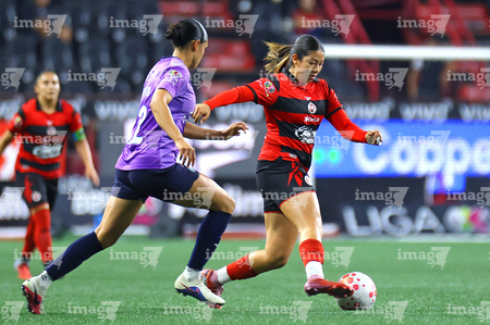 Tijuana, Baja California, 29 de marzo de 2026. Samantha López y Daniela Carrandi, durante el partido correspondiente a la jornada 14 del torneo Clausura 2026 de la Liga BBVA MX Femenil, entre las Xolas de Tijuana y las Chivas Rayadas del Guadalajara, realizado en el estadio Caliente. Foto: Imago7/Agustín Reyes