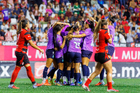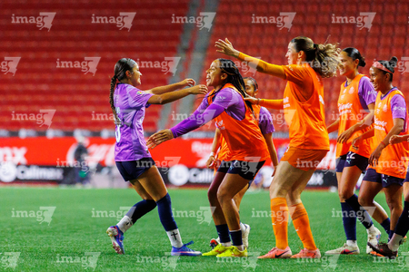 Tijuana, Baja California, 29 de marzo de 2026. Jugadoras de Xolas, durante el partido correspondiente a la jornada 14 del torneo Clausura 2026 de la Liga BBVA MX Femenil, entre las Xolas de Tijuana y las Chivas Rayadas del Guadalajara, realizado en el estadio Caliente. Foto: Imago7/Agustín Reyes
