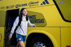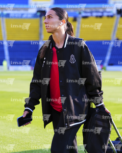 Ciudad de México, 1 de abril de 2026. María Sainz toma fotos, durante el partido correspondiente a la jornada 15 del torneo Clausura 2026 de la Liga BBVA MX Femenil, entre las Águilas del América y las Rojinegras del Atlas, realizado en el estadio Ciudad de los Deportes. Foto: Imago7/Carlos Vargas