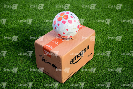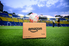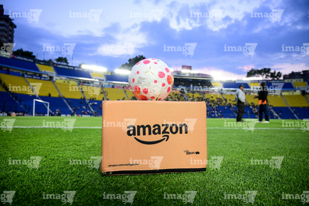 Ciudad de México, 1 de abril de 2026. Balón de futbol Nike Control sobre caja de Amazon, durante el partido correspondiente a la jornada 15 del torneo Clausura 2026 de la Liga BBVA MX Femenil, entre las Águilas del América y las Rojinegras del Atlas, realizado en el estadio Ciudad de los Deportes. Foto: Imago7/ Alexis Chavez