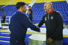 Ciudad de México, 1 de abril de 2026. Angel Villacampa, director técnico y Juan Pablo Alfaro, director técnico, durante el partido correspondiente a la jornada 15 del torneo Clausura 2026 de la Liga BBVA MX Femenil, entre las Águilas del América y las Rojinegras del Atlas, realizado en el estadio Ciudad de los Deportes. Foto: Imago7/Carlos Vargas