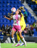 Ciudad de México, 1 de abril de 2026. Brenda Ceren y Gabriela García, durante el partido correspondiente a la jornada 15 del torneo Clausura 2026 de la Liga BBVA MX Femenil, entre las Águilas del América y las Rojinegras del Atlas, realizado en el estadio Ciudad de los Deportes. Foto: Imago7/ Alexis Chavez