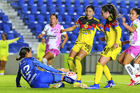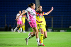 Ciudad de México, 1 de abril de 2026. Isa Haas y Jaquelín García, durante el partido correspondiente a la jornada 15 del torneo Clausura 2026 de la Liga BBVA MX Femenil, entre las Águilas del América y las Rojinegras del Atlas, realizado en el estadio Ciudad de los Deportes. Foto: Imago7/ Alexis Chavez