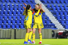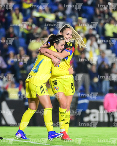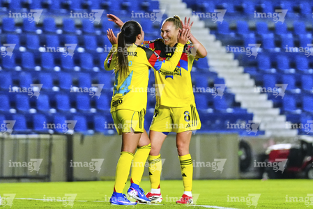 Ciudad de México, 1 de abril de 2026. Alexa Soto e Irene Guerrero en festejo de gol, durante el partido correspondiente a la jornada 15 del torneo Clausura 2026 de la Liga BBVA MX Femenil, entre las Águilas del América y las Rojinegras del Atlas, realizado en el estadio Ciudad de los Deportes. Foto: Imago7/Carlos Vargas