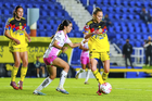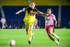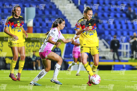 Ciudad de México, 1 de abril de 2026. Nithzaye Aguilar (D), durante el partido correspondiente a la jornada 15 del torneo Clausura 2026 de la Liga BBVA MX Femenil, entre las Águilas del América y las Rojinegras del Atlas, realizado en el estadio Ciudad de los Deportes. Foto: Imago7/Carlos Vargas