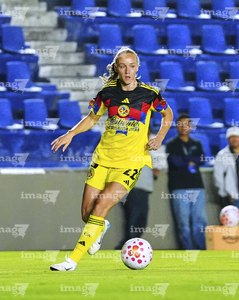 Ciudad de México, 1 de abril de 2026. Sarah Luebbert, durante el partido correspondiente a la jornada 15 del torneo Clausura 2026 de la Liga BBVA MX Femenil, entre las Águilas del América y las Rojinegras del Atlas, realizado en el estadio Ciudad de los Deportes. Foto: Imago7/Carlos Vargas