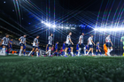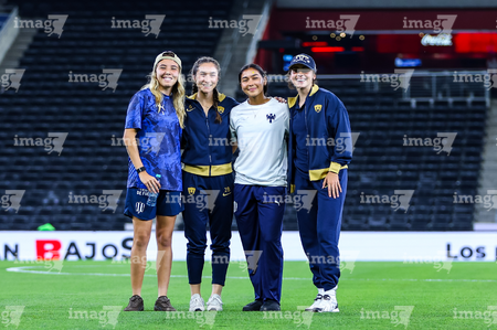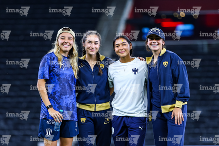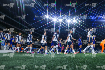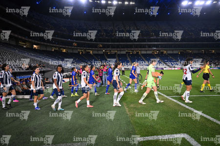 Guadalupe, Nuevo León, 1 de abril de 2026. Protocolo, durante el partido correspondiente a la jornada 15 del torneo Clausura 2026 de la Liga BBVA MX Femenil, entre las Rayadas del Monterrey y las Pumas de la UNAM, realizado en el estadio BBVA. Foto: Imago7/Nora Pamela