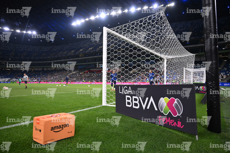Guadalupe, Nuevo León, 1 de abril de 2026. Caja de Amazon y Portigoles, durante el partido correspondiente a la jornada 15 del torneo Clausura 2026 de la Liga BBVA MX Femenil, entre las Rayadas del Monterrey y las Pumas de la UNAM, realizado en el estadio BBVA. Foto: Imago7/