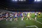 Guadalupe, Nuevo León, 1 de abril de 2026. Protocolo, durante el partido correspondiente a la jornada 15 del torneo Clausura 2026 de la Liga BBVA MX Femenil, entre las Rayadas del Monterrey y las Pumas de la UNAM, realizado en el estadio BBVA. Foto: Imago7/