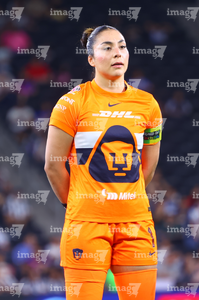 Guadalupe, Nuevo León, 1 de abril de 2026. Wendy Toledo, durante el partido correspondiente a la jornada 15 del torneo Clausura 2026 de la Liga BBVA MX Femenil, entre las Rayadas del Monterrey y las Pumas de la UNAM, realizado en el estadio BBVA. Foto: Imago7/ David Arzamendi