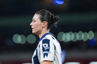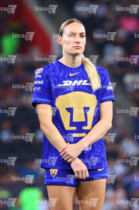 Guadalupe, Nuevo León, 1 de abril de 2026. Emily Gielnik, durante el partido correspondiente a la jornada 15 del torneo Clausura 2026 de la Liga BBVA MX Femenil, entre las Rayadas del Monterrey y las Pumas de la UNAM, realizado en el estadio BBVA. Foto: Imago7/
