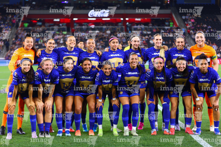 Guadalupe, Nuevo León, 1 de abril de 2026. Foto de equipo de Pumas, durante el partido correspondiente a la jornada 15 del torneo Clausura 2026 de la Liga BBVA MX Femenil, entre las Rayadas del Monterrey y las Pumas de la UNAM, realizado en el estadio BBVA. Foto: Imago7/ David Arzamendi