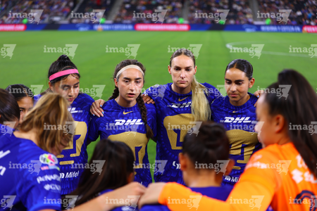 Guadalupe, Nuevo León, 1 de abril de 2026. Jugadoras de Pumas femenil, durante el partido correspondiente a la jornada 15 del torneo Clausura 2026 de la Liga BBVA MX Femenil, entre las Rayadas del Monterrey y las Pumas de la UNAM, realizado en el estadio BBVA. Foto: Imago7/ David Arzamendi