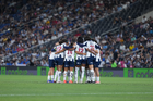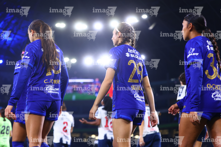 Guadalupe, Nuevo León, 1 de abril de 2026. Jugadoras de Rayadas, durante el partido correspondiente a la jornada 15 del torneo Clausura 2026 de la Liga BBVA MX Femenil, entre las Rayadas del Monterrey y las Pumas de la UNAM, realizado en el estadio BBVA. Foto: Imago7/