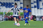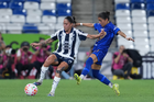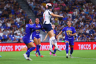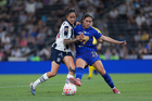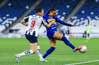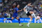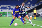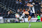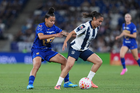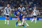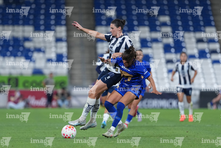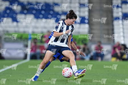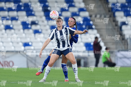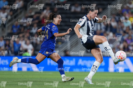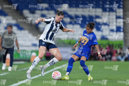 Guadalupe, Nuevo León, 1 de abril de 2026. Emily Gielnik (I), durante el partido correspondiente a la jornada 15 del torneo Clausura 2026 de la Liga BBVA MX Femenil, entre las Rayadas del Monterrey y las Pumas de la UNAM, realizado en el estadio BBVA. Foto: Imago7/