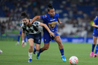 Guadalupe, Nuevo León, 1 de abril de 2026. Angelina Hix y Stephanie Ribeiro, durante el partido correspondiente a la jornada 15 del torneo Clausura 2026 de la Liga BBVA MX Femenil, entre las Rayadas del Monterrey y las Pumas de la UNAM, realizado en el estadio BBVA. Foto: Imago7/Nora Pamela