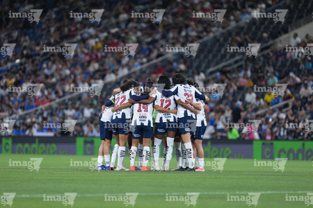 Guadalupe, Nuevo León, 1 de abril de 2026. Jugadoras de Rayadas, durante el partido correspondiente a la jornada 15 del torneo Clausura 2026 de la Liga BBVA MX Femenil, entre las Rayadas del Monterrey y las Pumas de la UNAM, realizado en el estadio BBVA. Foto: Imago7/Nora Pamela