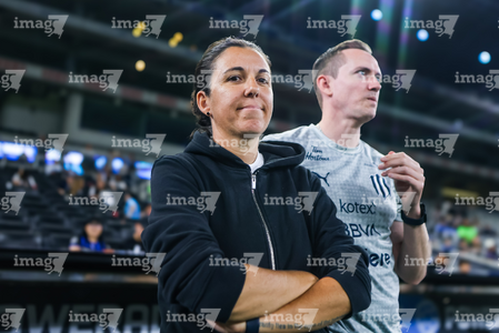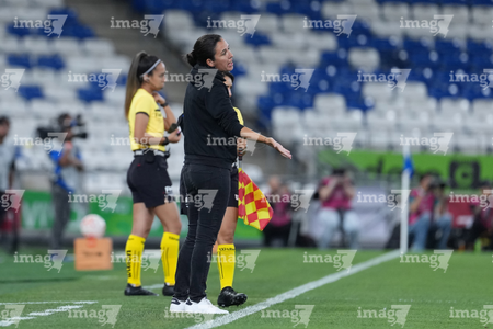 Guadalupe, Nuevo León, 1 de abril de 2026. Amandine Miquel, directora técnica, durante el partido correspondiente a la jornada 15 del torneo Clausura 2026 de la Liga BBVA MX Femenil, entre las Rayadas del Monterrey y las Pumas de la UNAM, realizado en el estadio BBVA. Foto: Imago7/