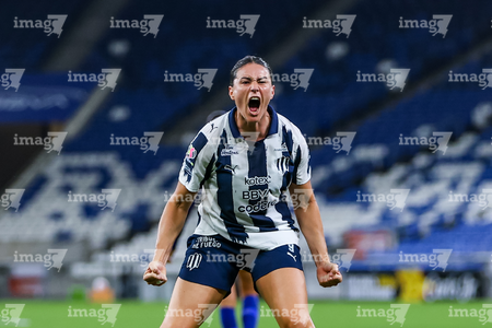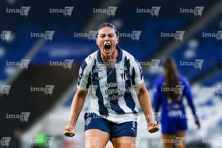 Guadalupe, Nuevo León, 1 de abril de 2026. Emily Gielnik en festejo de gol, durante el partido correspondiente a la jornada 15 del torneo Clausura 2026 de la Liga BBVA MX Femenil, entre las Rayadas del Monterrey y las Pumas de la UNAM, realizado en el estadio BBVA. Foto: Imago7/ David Arzamendi