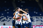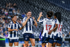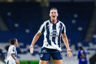 Guadalupe, Nuevo León, 1 de abril de 2026. Emily Gielnik anota gol, durante el partido correspondiente a la jornada 15 del torneo Clausura 2026 de la Liga BBVA MX Femenil, entre las Rayadas del Monterrey y las Pumas de la UNAM, realizado en el estadio BBVA. Foto: Imago7/