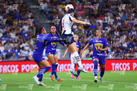 Guadalupe, Nuevo León, 1 de abril de 2026. Tanna Sánchez, Silvana Flores, Nicole Pérez y Nayeli Diaz, durante el partido correspondiente a la jornada 15 del torneo Clausura 2026 de la Liga BBVA MX Femenil, entre las Rayadas del Monterrey y las Pumas de la UNAM, realizado en el estadio BBVA. Foto: Imago7/