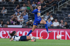 Guadalupe, Nuevo León, 1 de abril de 2026. Angelina Hix, durante el partido correspondiente a la jornada 15 del torneo Clausura 2026 de la Liga BBVA MX Femenil, entre las Rayadas del Monterrey y las Pumas de la UNAM, realizado en el estadio BBVA. Foto: Imago7/ David Arzamendi