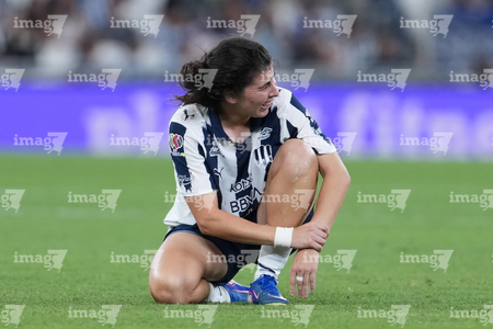 Guadalupe, Nuevo León, 1 de abril de 2026. Jermaine Seoposenwe en lamento, durante el partido correspondiente a la jornada 15 del torneo Clausura 2026 de la Liga BBVA MX Femenil, entre las Rayadas del Monterrey y las Pumas de la UNAM, realizado en el estadio BBVA. Foto: Imago7/Nora Pamela