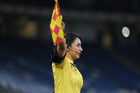 Guadalupe, Nuevo León, 1 de abril de 2026. Karla Anaid Hurtado, árbitra asistente durante el partido correspondiente a la jornada 15 del torneo Clausura 2026 de la Liga BBVA MX Femenil, entre las Rayadas del Monterrey y las Pumas de la UNAM, realizado en el estadio BBVA. Foto: Imago7/