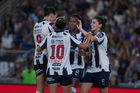 Guadalupe, Nuevo León, 1 de abril de 2026. Emily Gielnik anota gol, durante el partido correspondiente a la jornada 15 del torneo Clausura 2026 de la Liga BBVA MX Femenil, entre las Rayadas del Monterrey y las Pumas de la UNAM, realizado en el estadio BBVA. Foto: Imago7/ David Arzamendi