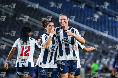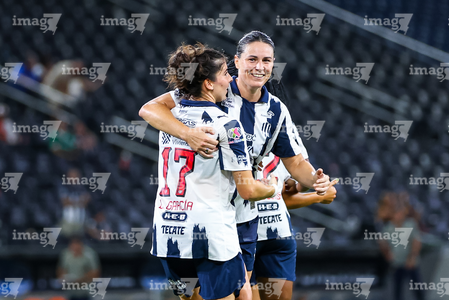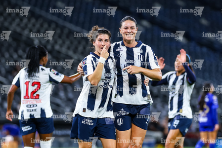 Guadalupe, Nuevo León, 1 de abril de 2026. Lucía García y Emily Gielnik en festejo de gol, durante el partido correspondiente a la jornada 15 del torneo Clausura 2026 de la Liga BBVA MX Femenil, entre las Rayadas del Monterrey y las Pumas de la UNAM, realizado en el estadio BBVA. Foto: Imago7/Nora Pamela