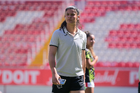 Aguascalientes, Aguascalientes, 1 de abril de 2026. Oscar Fernández, director técnico, durante el partido correspondiente a la jornada 15 del torneo Clausura 2026 de la Liga BBVA MX Femenil, entre las Centellas del Necaxa y las Bravas de FC Juárez, realizado en el estadio Victoria. Foto: Imago7/ Pablo Ramírez