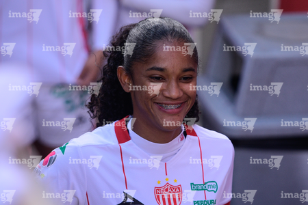 Aguascalientes, Aguascalientes, 1 de abril de 2026. Winibian Peralta, durante el partido correspondiente a la jornada 15 del torneo Clausura 2026 de la Liga BBVA MX Femenil, entre las Centellas del Necaxa y las Bravas de FC Juárez, realizado en el estadio Victoria. Foto: Imago7/ Pablo Ramírez