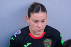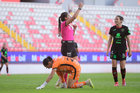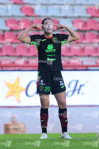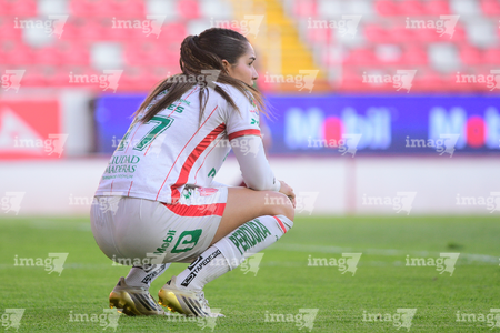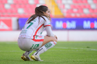 Aguascalientes, Aguascalientes, 1 de abril de 2026. Ana Torres en lamento, durante el partido correspondiente a la jornada 15 del torneo Clausura 2026 de la Liga BBVA MX Femenil, entre las Centellas del Necaxa y las Bravas de FC Juárez, realizado en el estadio Victoria. Foto: Imago7/ Pablo Ramírez