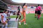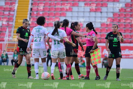 Aguascalientes, Aguascalientes, 1 de abril de 2026. Conato de bronca, durante el partido correspondiente a la jornada 15 del torneo Clausura 2026 de la Liga BBVA MX Femenil, entre las Centellas del Necaxa y las Bravas de FC Juárez, realizado en el estadio Victoria. Foto: Imago7/ Pablo Ramírez
