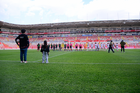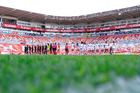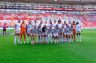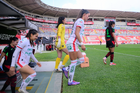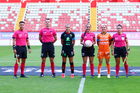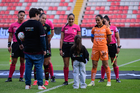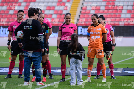 Aguascalientes, Aguascalientes, 1 de abril de 2026. Protocolo, durante el partido correspondiente a la jornada 15 del torneo Clausura 2026 de la Liga BBVA MX Femenil, entre las Centellas del Necaxa y las Bravas de FC Juárez, realizado en el estadio Victoria. Foto: Imago7/ Pablo Ramírez