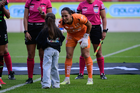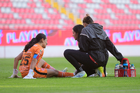 Aguascalientes, Aguascalientes, 1 de abril de 2026. Jennifer Amaro resultó lesionada, durante el partido correspondiente a la jornada 15 del torneo Clausura 2026 de la Liga BBVA MX Femenil, entre las Centellas del Necaxa y las Bravas de FC Juárez, realizado en el estadio Victoria. Foto: Imago7/ Pablo Ramírez