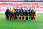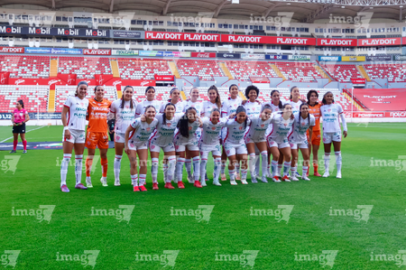 Aguascalientes, Aguascalientes, 1 de abril de 2026. Foto de equipo de Necaxa, durante el partido correspondiente a la jornada 15 del torneo Clausura 2026 de la Liga BBVA MX Femenil, entre las Centellas del Necaxa y las Bravas de FC Juárez, realizado en el estadio Victoria. Foto: Imago7/ Rogelio Davila
