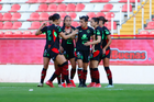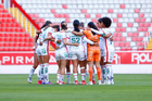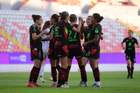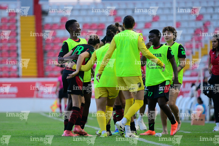 Aguascalientes, Aguascalientes, 1 de abril de 2026. Jugadoras del Necaxa femenil, durante el partido correspondiente a la jornada 15 del torneo Clausura 2026 de la Liga BBVA MX Femenil, entre las Centellas del Necaxa y las Bravas de FC Juárez, realizado en el estadio Victoria. Foto: Imago7/ Rogelio Davila