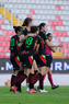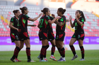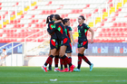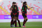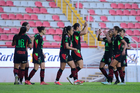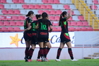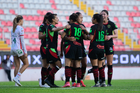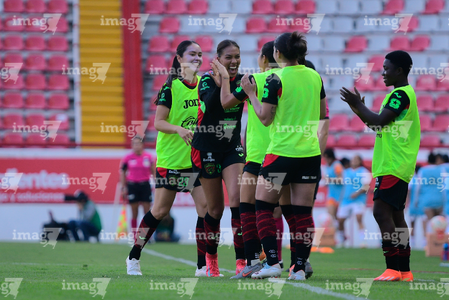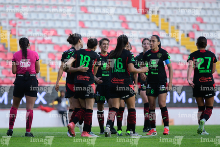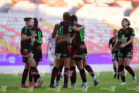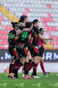 Aguascalientes, Aguascalientes, 1 de abril de 2026. Jugadoras del FC Juárez femenil en festejo de gol, durante el partido correspondiente a la jornada 15 del torneo Clausura 2026 de la Liga BBVA MX Femenil, entre las Centellas del Necaxa y las Bravas de FC Juárez, realizado en el estadio Victoria. Foto: Imago7/ Pablo Ramírez
