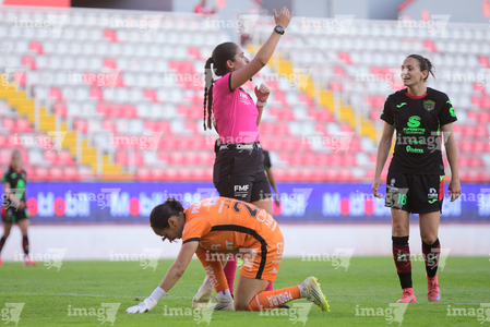 Aguascalientes, Aguascalientes, 1 de abril de 2026. Portigoles, durante el partido correspondiente a la jornada 15 del torneo Clausura 2026 de la Liga BBVA MX Femenil, entre las Centellas del Necaxa y las Bravas de FC Juárez, realizado en el estadio Victoria. Foto: Imago7/ Pablo Ramírez